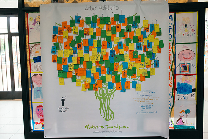 En los días previos los chicos y chicas del colegio habían aportando todo su arte al evento con la creación de un montón de coloristas marcapáginas. También habían colgado sus sueños en un gran árbol solidario colocado en el hall del centro escolar y escuchado con enorme atención las explicaciones que les dieron en las aulas los voluntarios de Sintiendo el Sur.