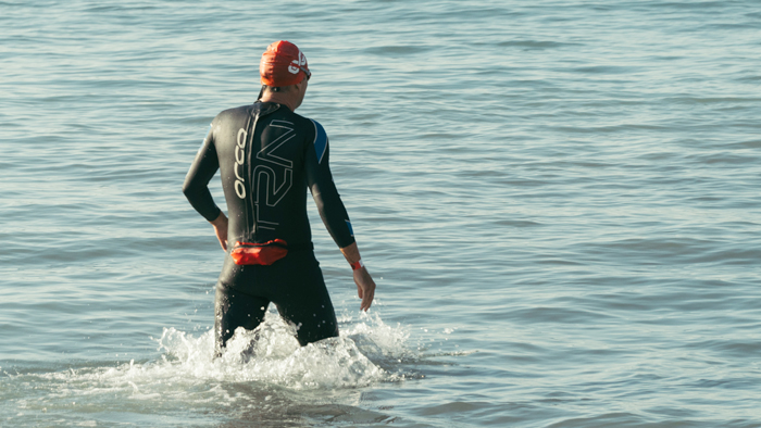 Roberto en una de las entradas al agua de las cinco vueltas que tenía que realizar.
